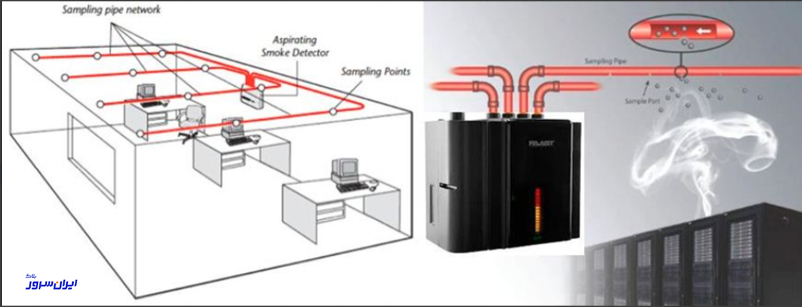 یکی از این دستگاهها به طور مداوم نمونههایی از هوای دیتاسنتر را از طریق لولهکشیهایی که در سقف دیتاسنتر نصب شدهاند مکیده و به یونیت مرکزی هدایت میکند. یونیت مرکزی این جریان هوا را آنالیز کرده و وجود دود در هوا را تشخیص میدهد . این سیستمها توانایی تمییز دود از گرد و خاک را دارند.